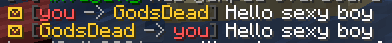 Slightly changed /msg colors so it stands out a bit more, it was winding me up blending in. Also, you can msg yourself for some reason.GodsDead 01/02/2022 09:05