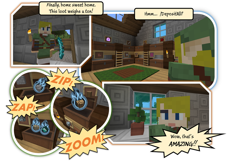 /depositall from your inventory to nearby chests at Captain!