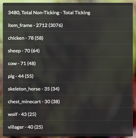 Sneak peak at a part of a custom private dashboard I made myself in the last few days, queries and shows me entity count live (this part) so I can keep an eye on the entities that are alive and ticking that current minute!